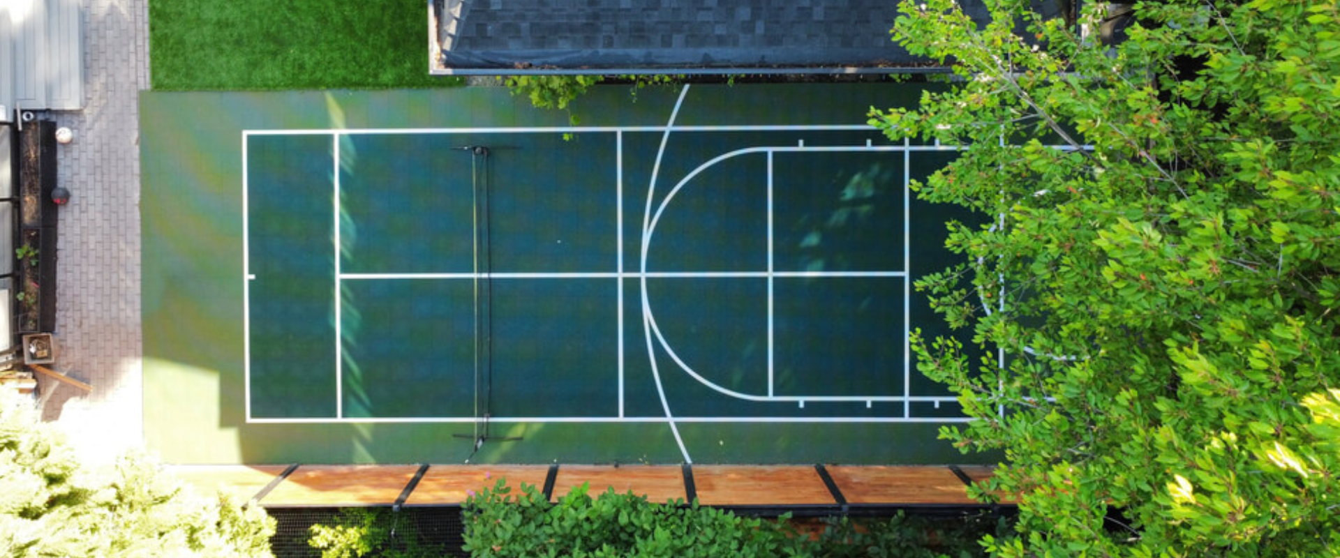 This outdoor sport court flooring isn’t just for basketball—it’s also great for volleyball, roller hockey, badminton, and even indoor home gyms.